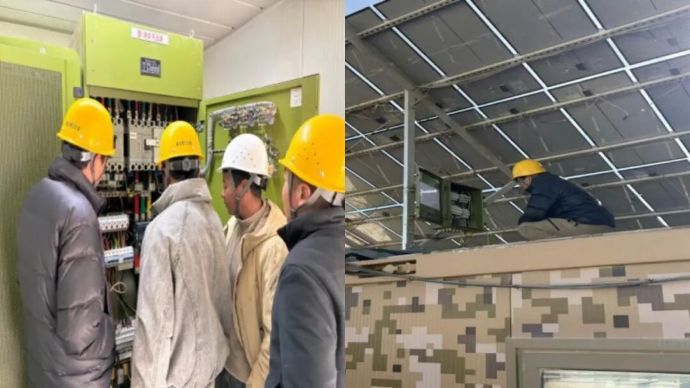 活動中,運維技術(shù)人員對營區(qū)電力設(shè)施進行了系統(tǒng)性安全檢查,使用專業(yè)設(shè)備對開關(guān)柜、匯流箱等關(guān)鍵設(shè)備進行運行狀態(tài)監(jiān)測與隱患排查。此外,技術(shù)人員結(jié)合實際問題向部隊官兵講解了安全用電要點和設(shè)備日常維護知識,并發(fā)放了安全用電手冊。