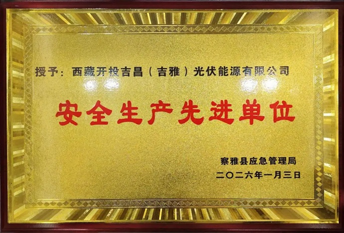 近日,西藏開投吉昌(吉雅)光伏能源公司被察雅縣應(yīng)急管理局授予“安全生產(chǎn)先進單位”榮譽稱號。