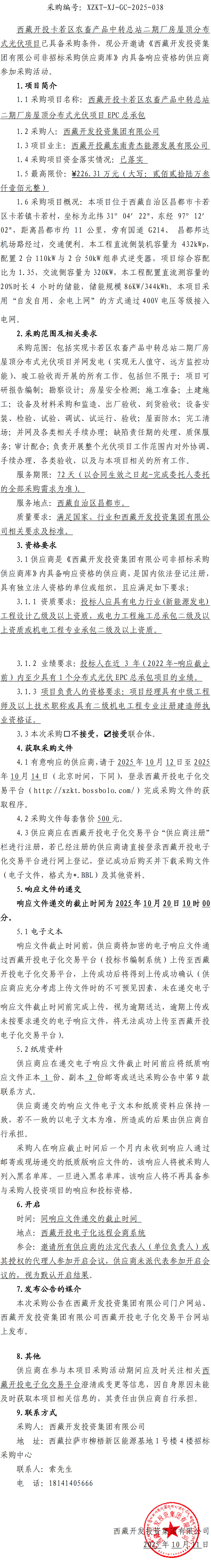 西藏開投卡若區(qū)農(nóng)畜產(chǎn)品中轉(zhuǎn)總站二期廠房屋頂分布式光伏項(xiàng)目詢比采購公告